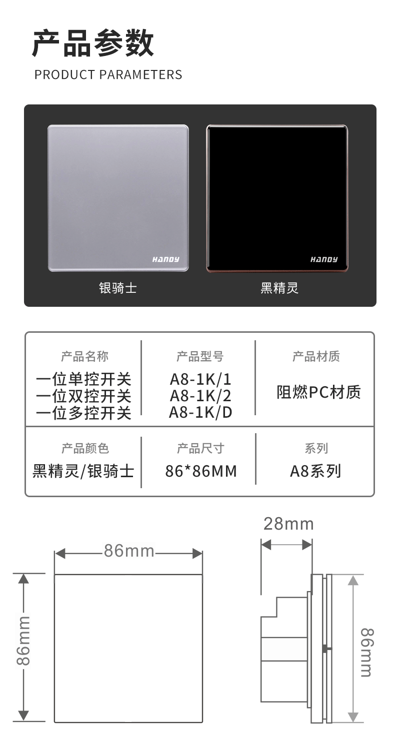 A8系列-一位單雙多控開關(guān)