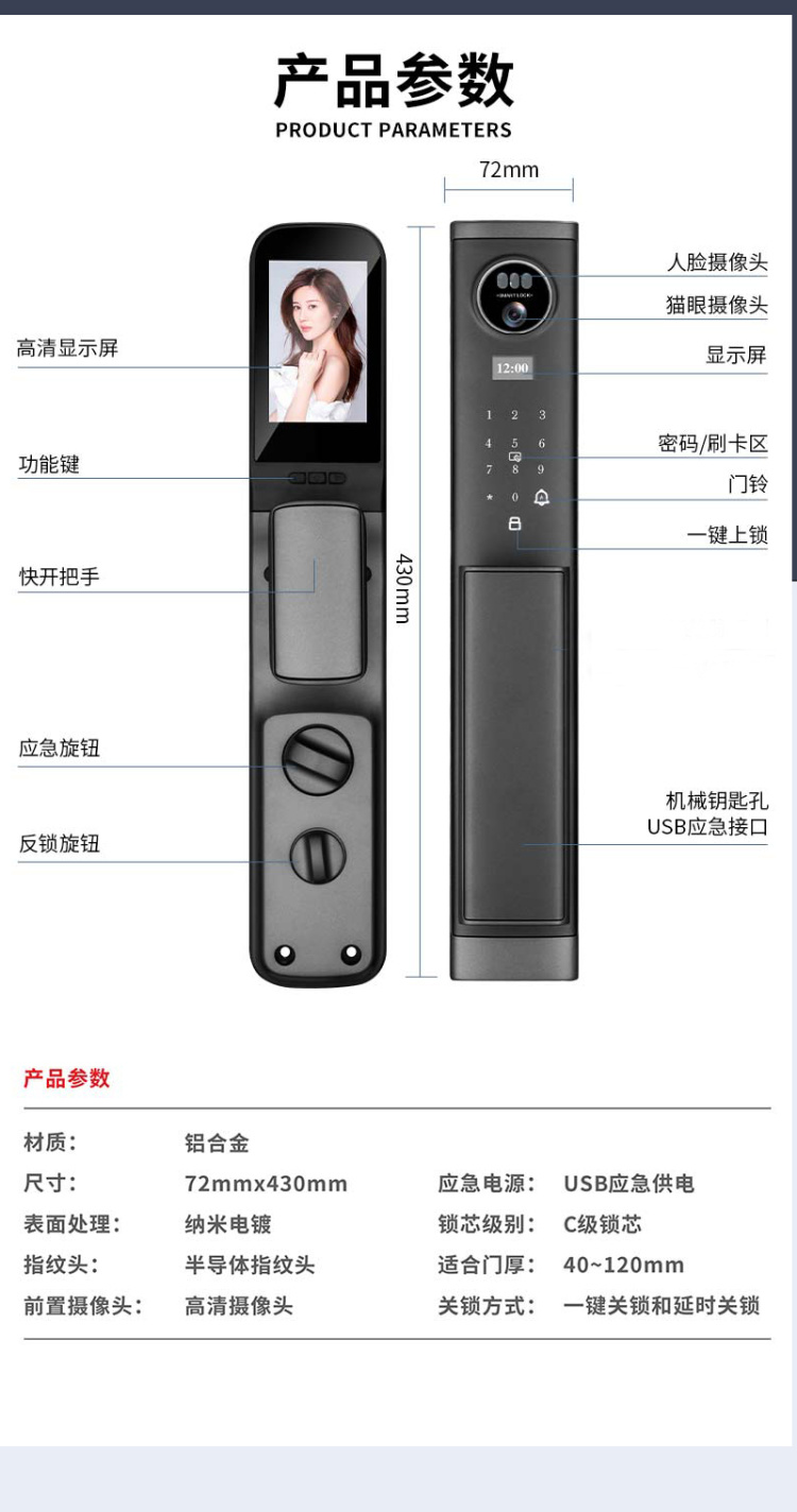 RM01指紋+人臉版智能鎖